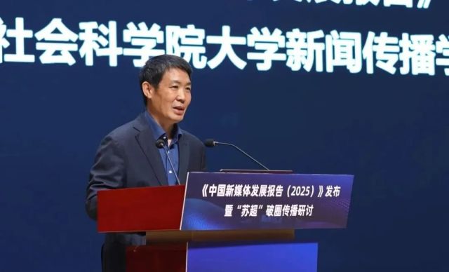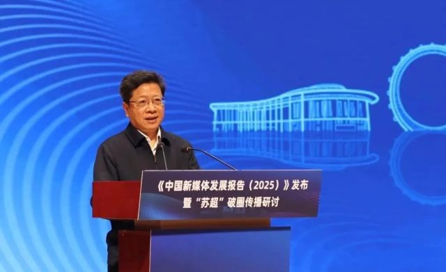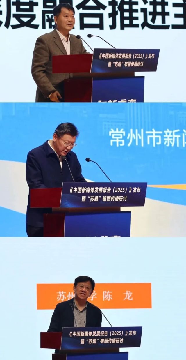 2025年12月2日,《中国新媒体发展报告(2025)》发布暨“苏超”破圈传播研讨会在江苏常州举行。在会议开幕式上,常州市委常委、市委宣传部部长陈志良,凤凰出版传媒集团副总经理、现代快报社社长屠法,中国社会科学院新闻与传播研究所副所长刘利,江苏省委网信办副主任尤健等发表致辞。