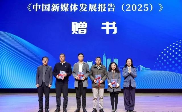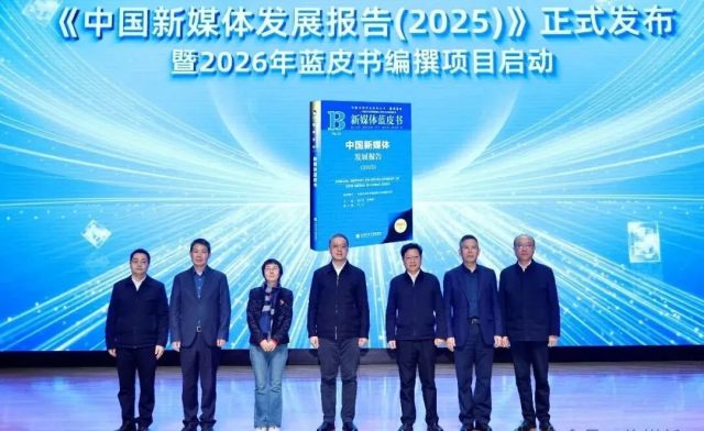 会议最后,中国社会科学院新闻与传播研究所副所长刘利,《中国新媒体发展报告》主编、中国社会科学院大学新闻传播学院副院长黄楚新,江苏省委网信办副主任尤健,常州市委常委、市委宣传部部长陈志良,凤凰出版传媒集团副总经理、现代快报社社长屠法,常州市委宣传部副部长、市委网信办主任姜玉涛,常州经开区党工委委员、管委会副主任、组织部部长陆伟共同主持了《中国新媒体发展报告(2025)》正式发布暨2026年蓝皮书编撰项目启动仪式。