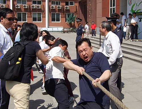 5月25日,中国社科院第五届职工运动会拔河项目预选赛在院部食堂前空地拉开帷幕。我所代表队众志成城,在第一轮比赛中将世经政所代表队一举拿下,无奈在第二轮对阵院人事局代表队中技不如人,败下阵来。上图为我所代表队正在紧张的拔河比赛中。下图为我所代表队赛后集体合影。