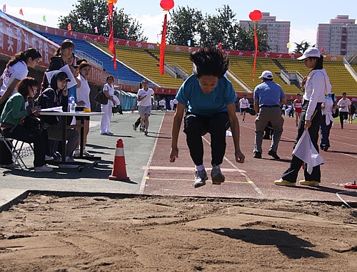 上图为我所吴秋玲在跳远比赛中。